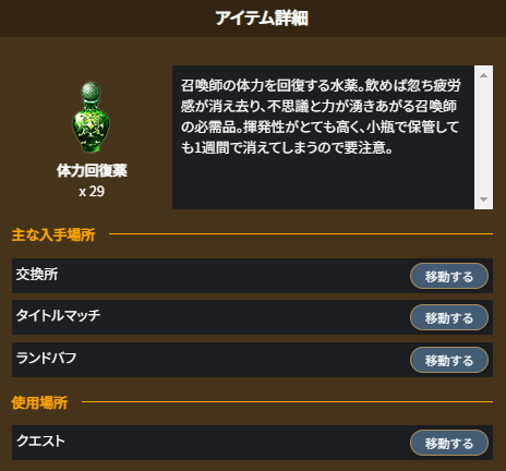 所属している国のランドバフやランドメイクの探索基地の回収アイテムとして入手する機会が多いため、使用期限が切れる前にしっかりと消化しておこう。