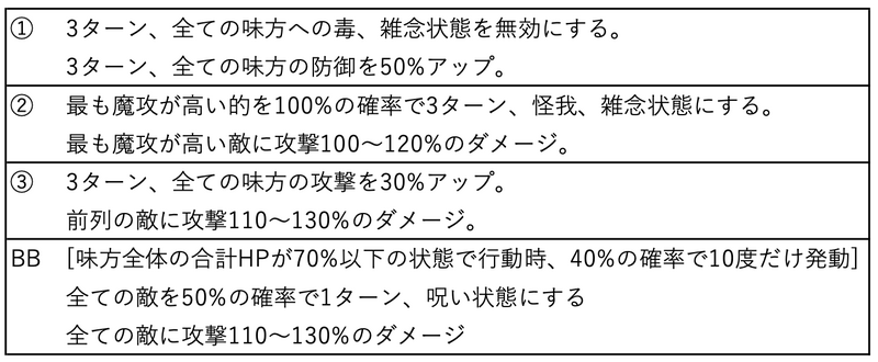 最初の行動で、闇属性のボスが毒・雑念無効、光属性のボスが怪我・麻痺無効を使ってきます。