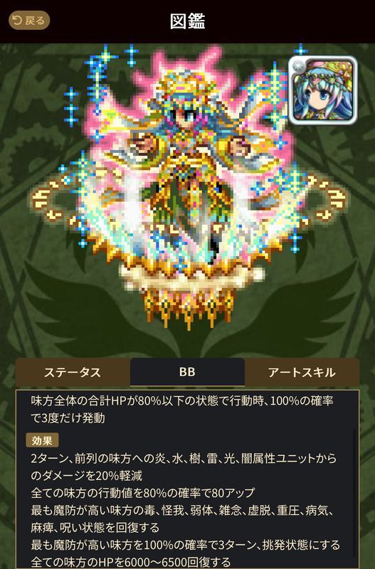 ティリスのBBで前列ユニットに属性軽減を付与できるので