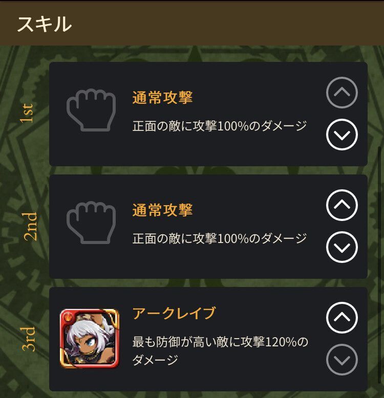 - 神剣アルトレイト:3ターン、自分の攻撃を20%アップ、攻撃115%のダメージ