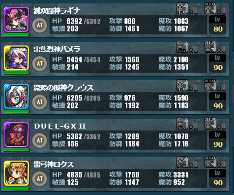 全体攻撃ユニット雷焦烈神パメラの敏捷を214にすることで