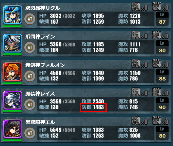 - 敵アタッカーの敏捷値の隙間をぬって味方アタッカーの防御力を変化させ、フォーカスをずらす