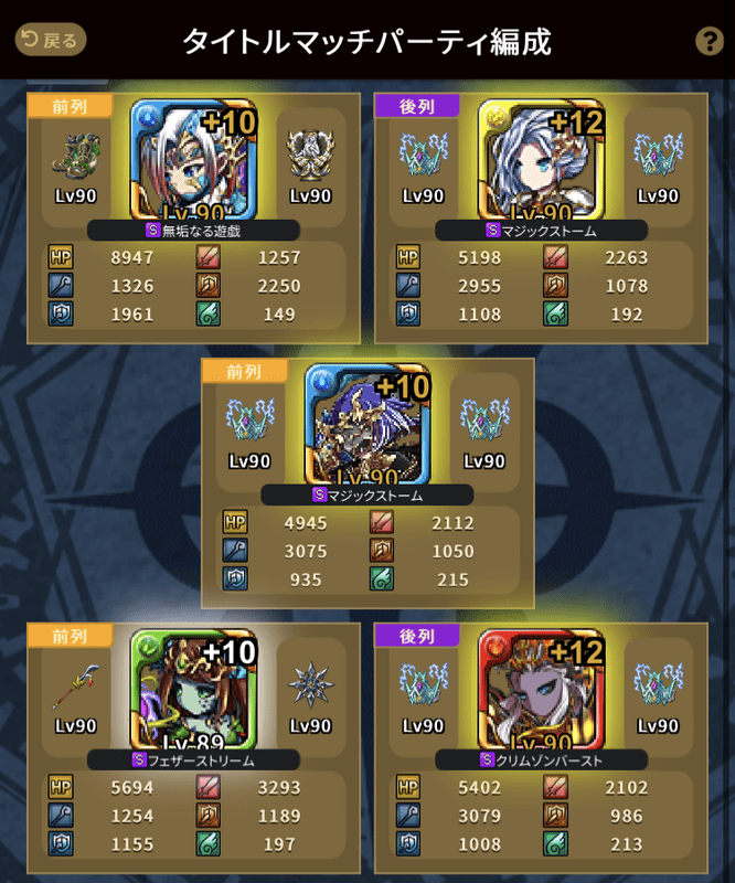 今回のお相手に合わせて全体攻撃ユニットの敏捷を高めたが、敏捷を犠牲に火力が不足してしまった。