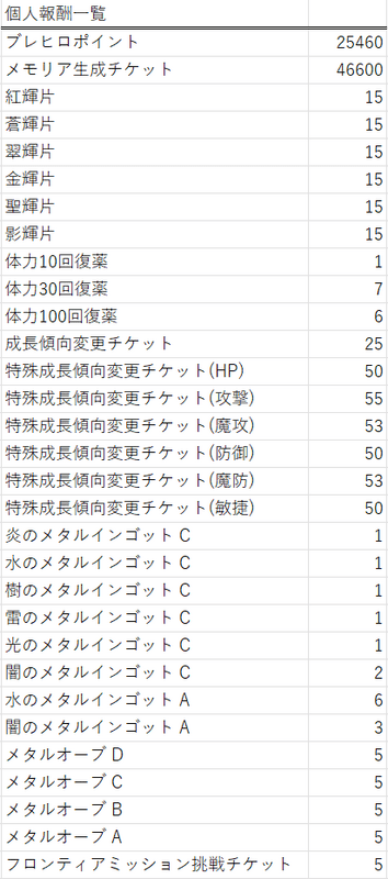 - 個人ランキング報酬