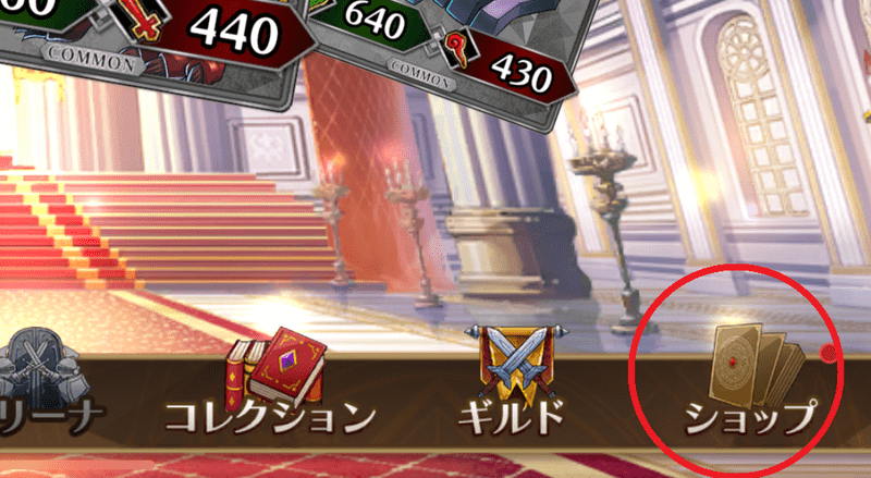 | 2.ホーム画面のショップを開きカード購入を選択する。 |