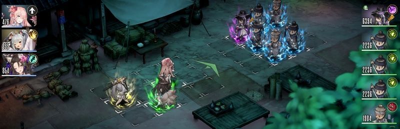 ①左列後キュウビスキル(会心が出る場合は後雑魚処理可能でない場合はシルヴィアの位置変更した方が無難)