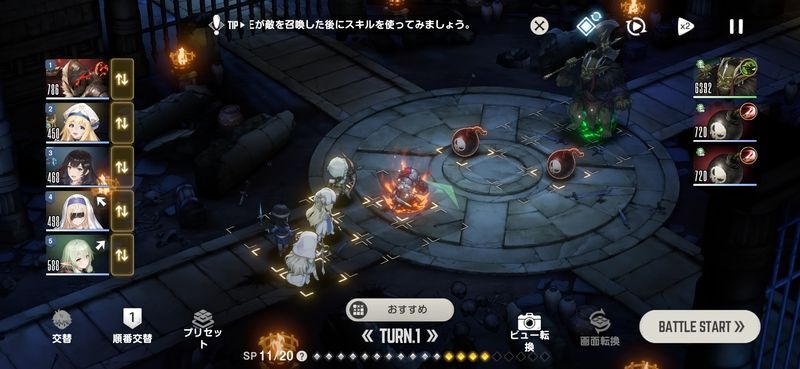 1ターン目はゴブリンスレイヤー以外はスキルを使わず爆弾をノックバックさせましょう。