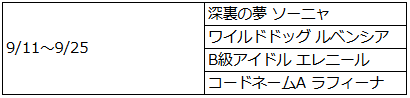 2025年9月11日(木)メンテナンス後~9月25日(木)メンテナンス前まで