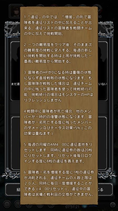 遺跡に冒険者を派遣して1層あたり50ステージの調査を行う。