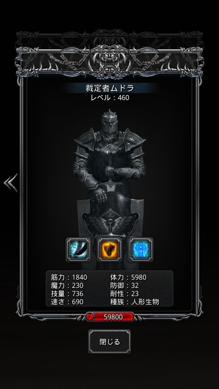 裁判所の紋章1個消費(鉄30000、ミスリル20000、強者の血4)