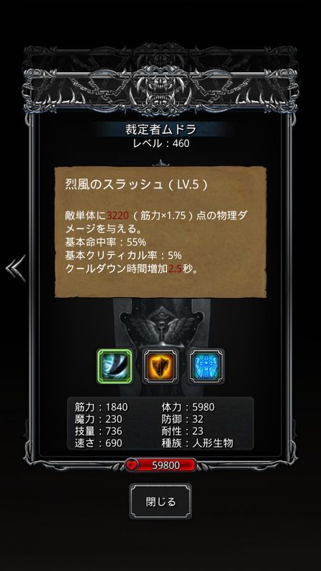 烈風のスラッシュ(Lv5) : 単体3220物理ダメージ