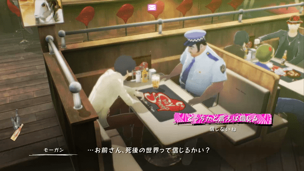| ・第5夜 ・バー | 正解: 「どっちかと…」(天使UP) 失敗: 「信じない…」(悪魔UP) |