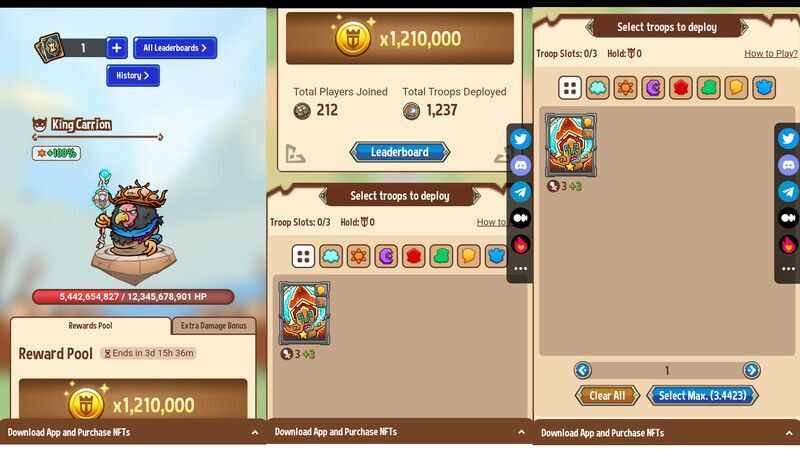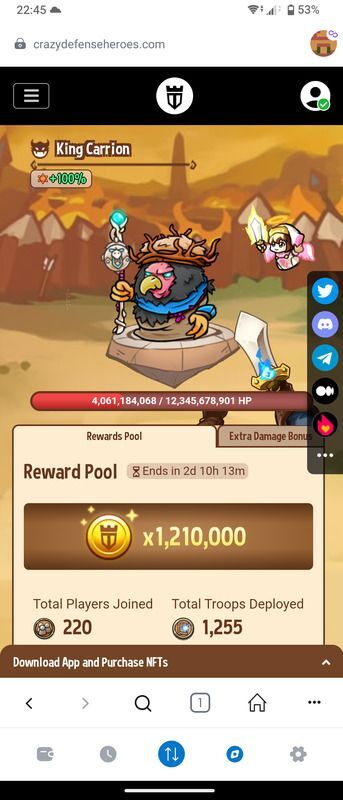 2.TOWERバトルカードNFT(部隊)を1枚以上使用して、協力バトルに参加してください。配備された部隊は戦闘終了日まで隔離されます。Crazy Defense Heroes Play-and-Earnキャンペーンに参加する資格を得たい場合は、別のバトルカードNFTを保持することを忘れないでください。