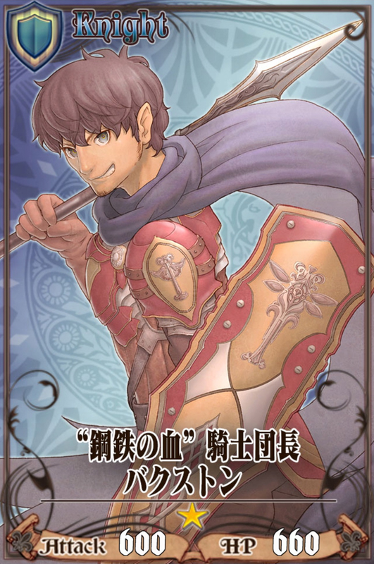 | PROFILE | 聖王国に数多く存在する小騎士団のひとつ、“鋼鉄の血”騎士団の団長。野心家で、自らの騎士団の格を上げるために日々武功を高める機会を探している。 |