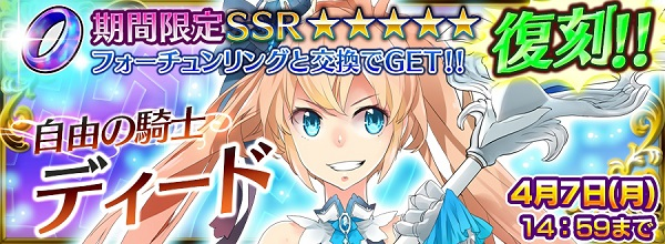 | ①フォーチュンリング交換70個 2013/11/30(23:59)まで②復刻期間: 2014/3/28(15:00)~ 4/7(14:59)まで③復刻期間: 2015/2/20(15:00)~ 3/5(9:59)まで | 2013/10/01 |