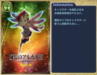 メニュー>アルカナ一覧 から目当てのアルカナを選択することで、初期状態のアルカナを確認できる。