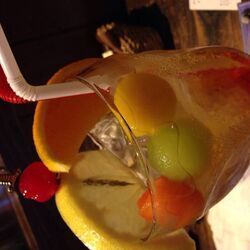マレーナのドリンクはチェリーに劔の形の串が刺さってるのが良かった