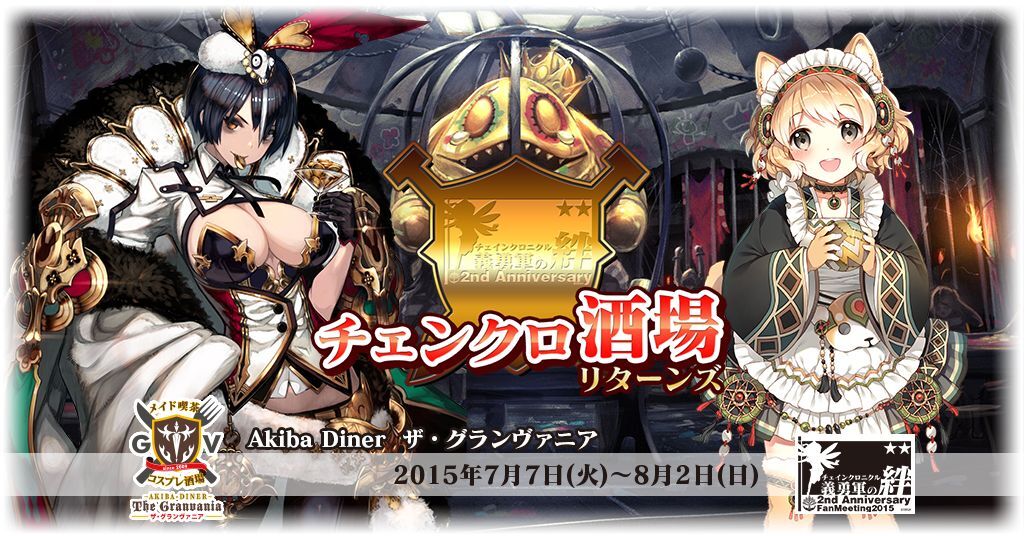 7月7日(火)から8月2日(日)まで、チェインシナリオRPG『チェインクロ ニクル ~絆の新大陸~』の世界を再現した“チェンクロ酒場 リターンズ”が秋葉原のAkiba Diner ザ・グランヴァニアに期間限定でオープン。