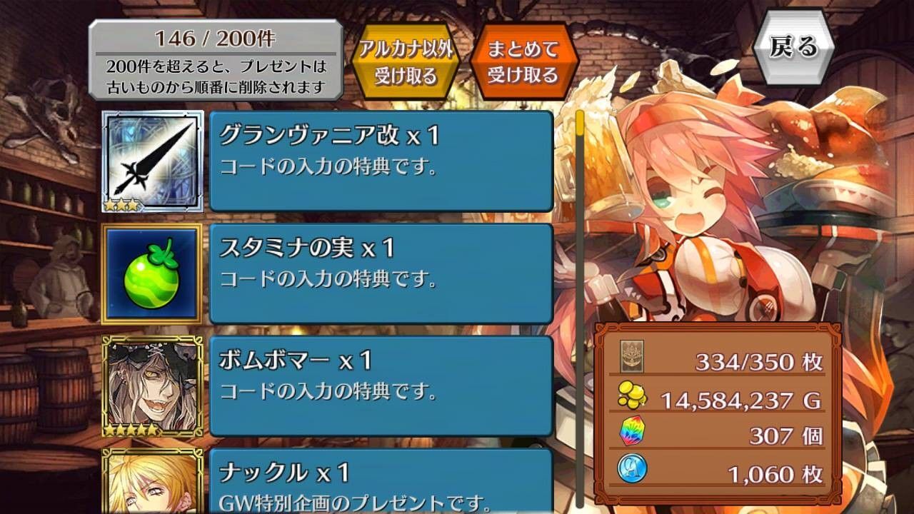 ③ a 参加賞スタ実 b 3等 精霊石(当初剣ではなかった?)