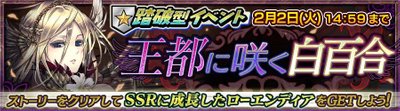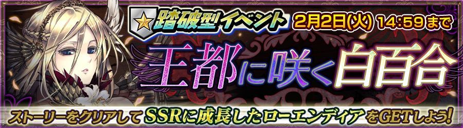 1月26日より開催される踏破型のイベント“王都に咲く白百合”では、報酬キャラクターとしてローエンディア3(声優:内田真礼)が成長した姿で登場。