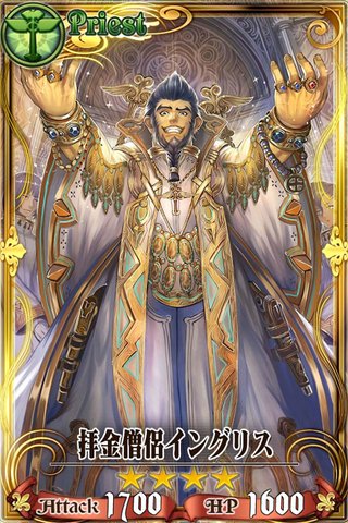 | 商売神官 | 神に仕える身でありながら、商売を生業とする神官。戦闘で獲得するゴールドが(20%)増える。また通常回復の回復量が(5%)上がり、回復範囲が広がる。イングリスの専用アビリティ。 |