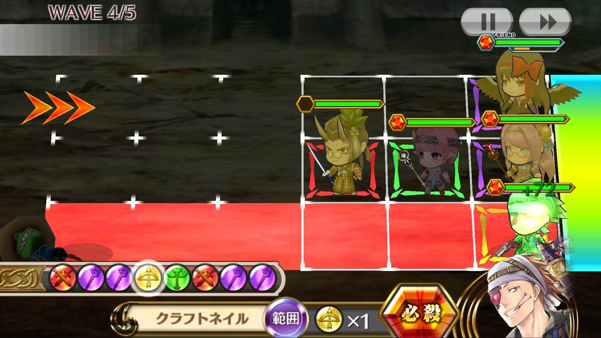| クラフトネイル | 1 | 直線範囲上にいる敵1体に5回小ダメージ(1倍×5回)を与える。発動時に一定確率でスクラップを1つ破壊する。 |