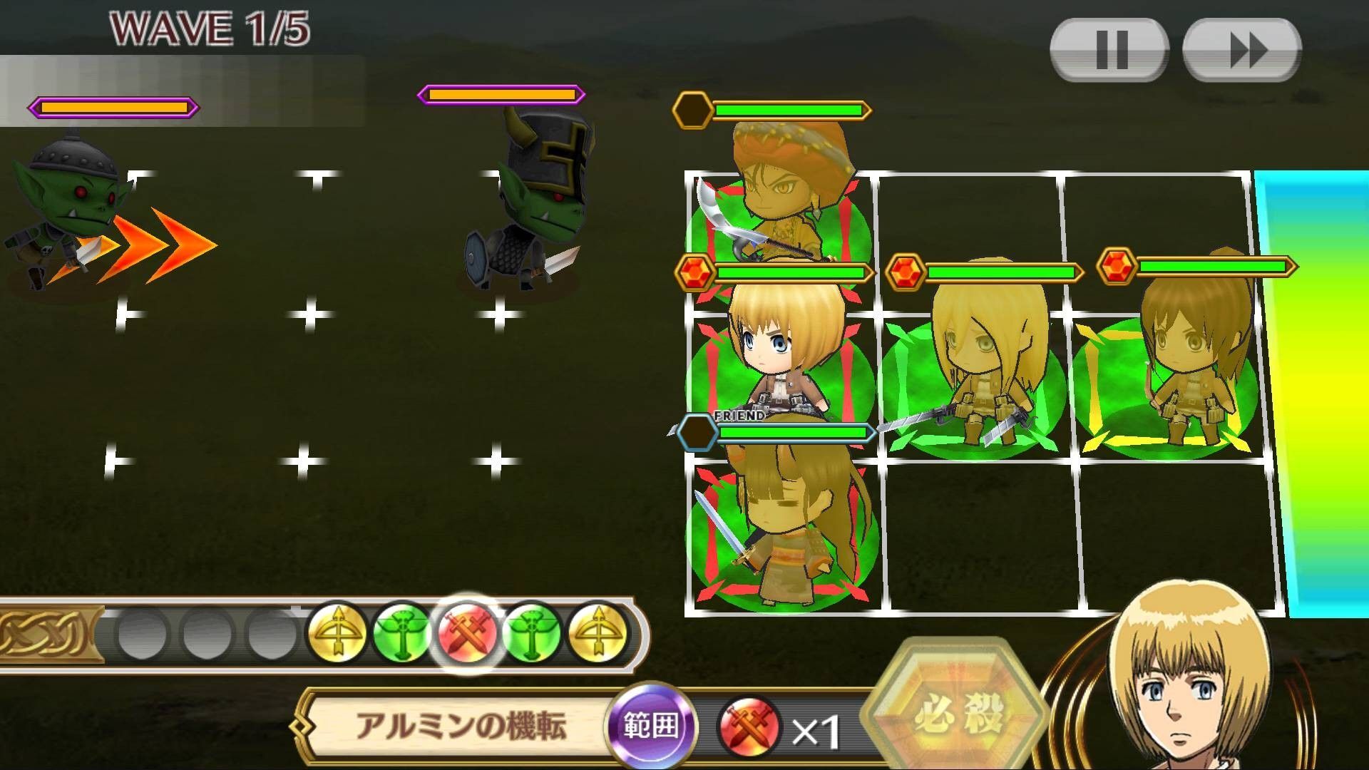 | アルミンの提案 | 3 | ◆自身がサブパーティにいると、メインパーティの攻撃力(3%)と防御力(2%)が上がる。 |