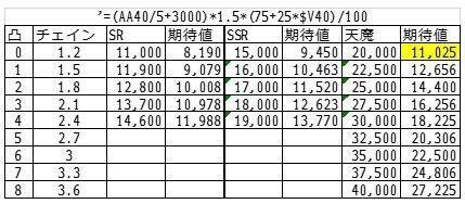 ※親愛度0、キャラクエ3、シーズン一致、チェイン数25での期待値を算出