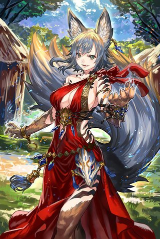 | PROFILE | ユグドとは異なる大陸に住む、ケ者の女性。狐尾族と呼ばれる一族の出身。相手を苛立たせる言動で挑発し、逆上したところにカウンターを決める戦い方を得意としているが、どこか挑発自体を楽しんでいる節がある。 |