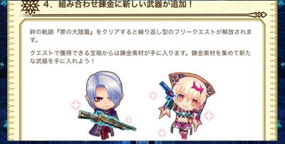| 運命の物語 | ”餓えなき我が欲望” | 報酬:精霊石 / 場所:罪の大陸(外海) / 要Lv:1 / 敵Lv:14 / AP:5 / 戦闘:3回 / 地形:監獄内 / 敵:人間 |