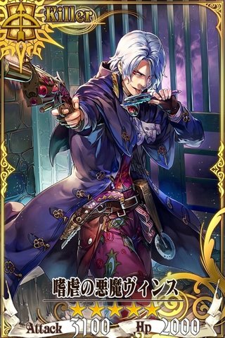 | PROFILE | とある大陸の裕福な家に生まれ、文武両道な上にどこか陰のある美しい容貌も兼ね備えていたことから、神に愛された貴公子と謳われた青年。しかしその裏の顔は、強い加虐嗜好を持つ快楽殺人者で、街の路地裏に潜んで数多くの美女を殺めてきた。ただ、街全体が怯えるほどの嗜虐を行っても心は満たされず、それを埋めるなにかを探している。 |