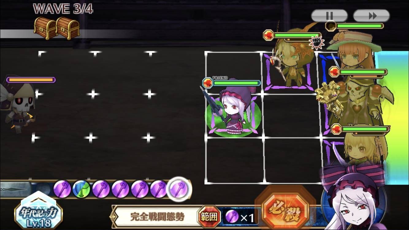 | アインズの正妻(やっぱり自称) | ◆敵を倒すたび、攻撃力(2%)が一定時間(60秒)上がる。◆敵を5体倒すたびに、魔法使いマナを獲得する。この効果は3回まで発動する。テキスト |