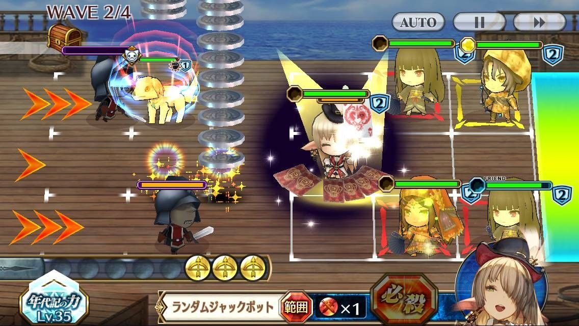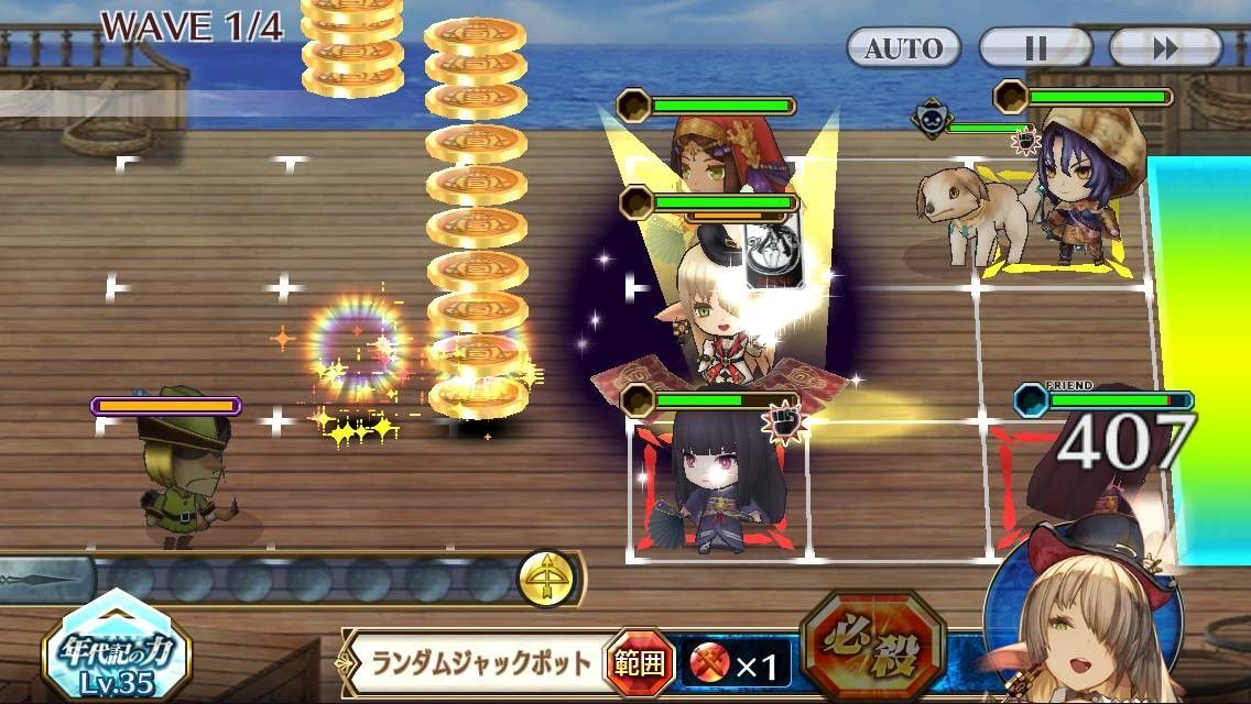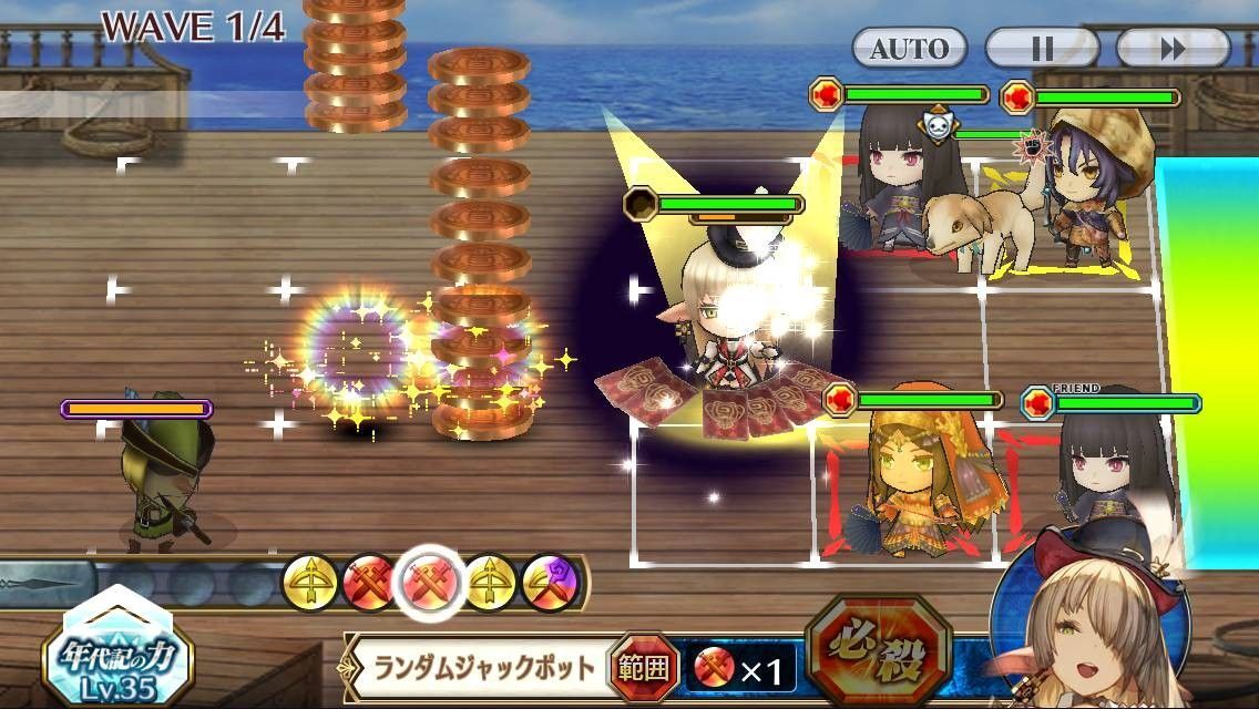 | ランダムジャックポット | 1 | 前方範囲内の全ての敵に小ダメージ(キング5.1倍、エース5.6倍、ジョーカー6倍)を与える。この効果はカードの絵柄によって変化し、ジョーカーの場合、ダウンを追加する。 |