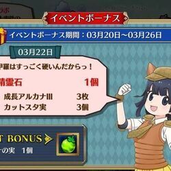 | アーマー・スケイル | 1 | ダッシュ範囲上にいる全ての敵に小ダメージ(4倍)を与え、弾き飛ばした後、元の位置に戻る。同時に味方全体に3回まで防御力(ATK10%)を上げるバリアをはる。マナが3つ以上で発動した場合、必殺技の威力が上がり(7.5倍)、全状態異常を防ぐ効果を追加する。 |