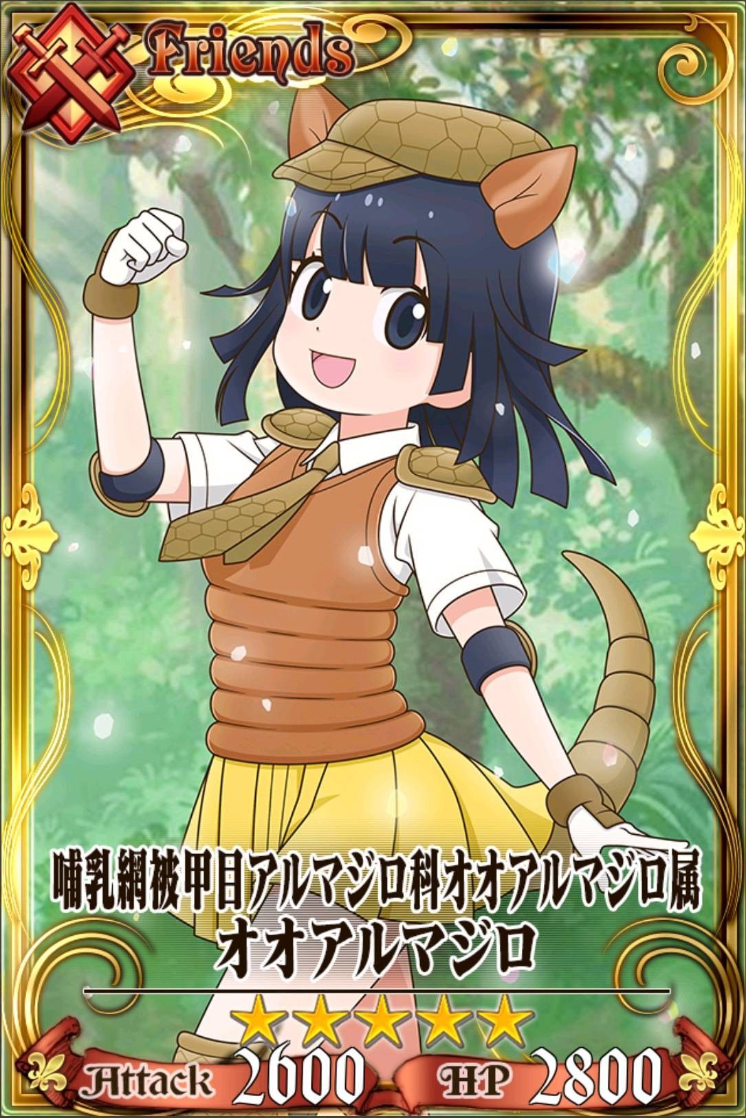 | 哺乳網被甲目アルマジロ科オオアルマジロ属オオアルマジロ | ★★★★★SSR | Friends | 戦士 | 旅人 | 20 | けものフレンズプロジェクト2A | 本宮佳奈 |