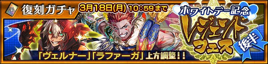 ・「【復刻】ホワイトデー記念 レジェンドフェス・後半」に登場するSSRはレジェンドフェス限定の登場を予定しています。