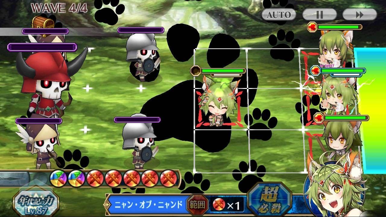 | ニャン・オブ・ニャンド | 1 | 【超必殺/連撃】前方範囲内の全ての敵に8回ダメージ(1回/0.8倍)を与える。その後、広範囲内の全ての敵に小ダメージ(3倍)を与え、弾き飛ばす。 |