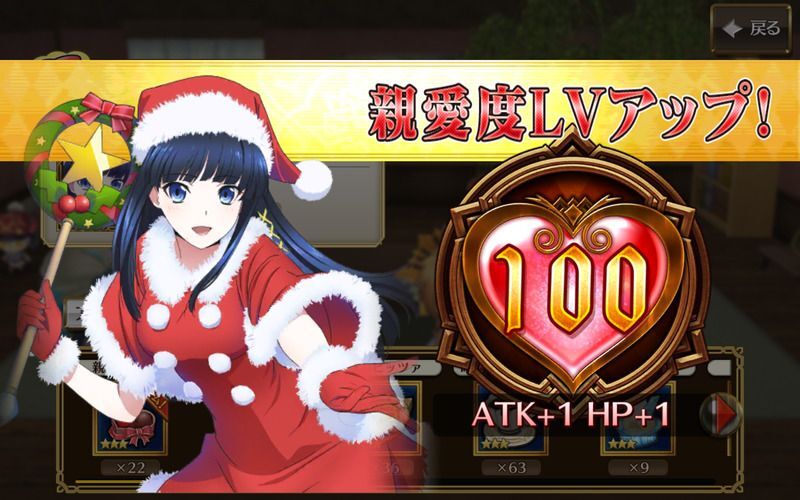 | ◆戦場に自身を含む魔法使いの味方が3人以上いる時、味方全体の攻撃力(30%)と防御力(10%)が上がり、HPが徐々に(10%/5秒)回復する。 ◆WAVEが進むたび、味方全体のHPを(25%)回復し、3回まで防御力を(ATK5%)上げるバリアをはる。バリアは炎/氷属性ダメージも防ぐ。 お兄様、深雪からのプレゼントです。 | |
