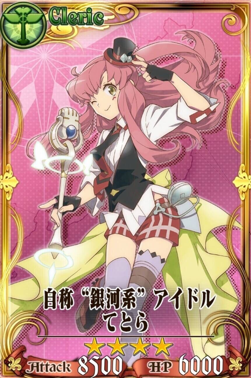 | 正統派美少女銀河系アイドル | ◆防御力(?%)と移動速度と通常回復の回復量が(?%)上がり、回復範囲が広がる。◆敵が宝箱を落とす可能性が上がり、クエスト後、一定確率でAPが回復する。てとらちゃんと呼んでね! |