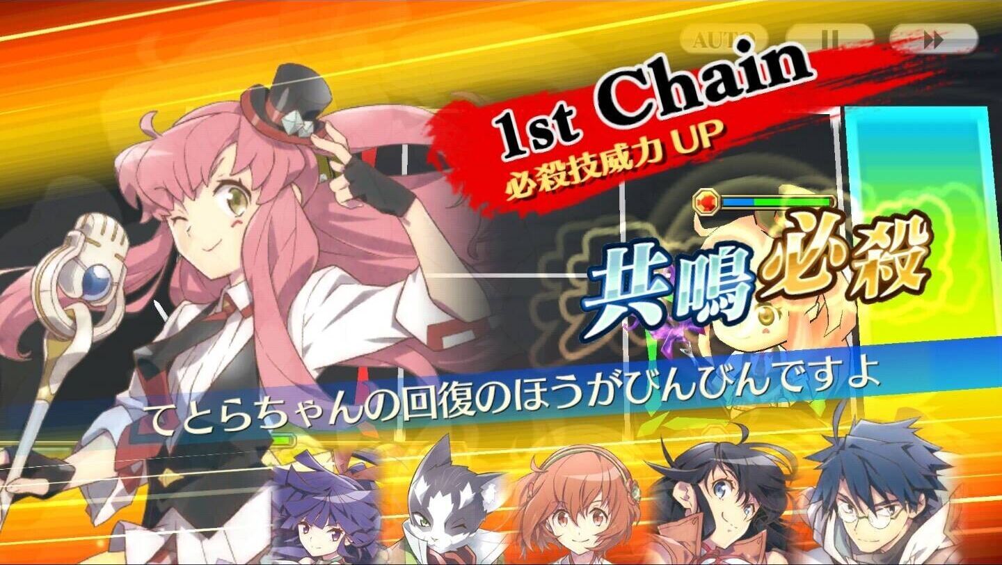 | てとらちゃんのオーロラヒール! | 1 | 【共鳴必殺】 味方全体のHPを上限を(?%)超えて小回復(?%)する。さらに味方全体の攻撃力(?%)と防御力(?%)を一定時間(?秒)上げる。 |