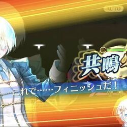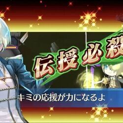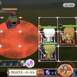 | グロリアス・バースト | 1 | 【共鳴必殺/連撃】前方範囲内の全ての敵に2回ダメージ(1回/3.5倍)を与え、転倒させる。その後、一定時間(30秒)、味方全体の攻撃力(35%)と防御力(ATK1.5%)が上がり、盾破壊を付与する。 |