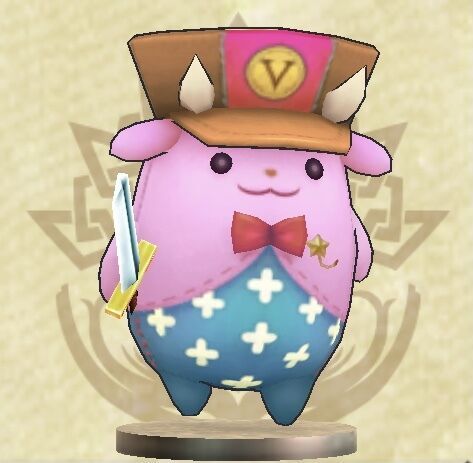 | ◆全ての必殺技が使えるマナを1つ持った状態で戦闘を開始する。 ◆攻撃力(475%)と防御力(40%)と移動速度が上がる。戦場にいる敵の数が多いほど効果が(攻撃力【25+2×敵の数】%、防御力【20+1×敵の数】%)上がる。 ◆クリティカル発生率とクリティカル威力(150%)が上がり、クリティカル攻撃時、クリティカル攻撃が範囲攻撃になり、盾を破壊する。 遊戯場の《マスコット》となった魔神。 | |