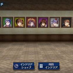 | 壁家具 | キャラ・肖像画 | ベースグッズ・小 | ・青 ・緑 ・黄色 ・赤 ・紫 ・白 ・黒 ・透過(窓のように外が映る) ※キャラクター設定時のみ有効(ベースグッズのまま飾っている場合は非対応) |