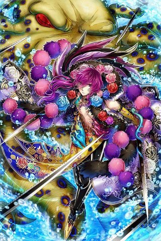| ◆戦場に自身を含む戦士/騎士/魔法使いの味方が3人以上いる時、味方全体の攻撃力(35%)と防御力(15%)と移動速度が上がる。 ◆戦闘開始時とボスWAVE開始時、一定時間(60秒)、味方全体の通常攻撃に毒/スロウにする追撃(35%)を付加する必殺技が発動する。 これが、美しく生まれた者の定めなんだもの……。 | |