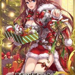 | ◆戦場にいる味方の攻撃力(35%)と防御力(15%)と移動速度が上がる。WAVEが進むたび、一定時間(?秒)効果が(攻撃力5%、防御力2.5%)上がり、さらにクリティカル発生率とクリティカル威力(2.5%)が一定時間(?秒)上がる。 ◆凍結/封印にならない。またマナスロット時に全ての職業の性質を持ったマナが追加され、マナが2つ以上出やすくなる。 聖夜の衣装と立ち振る舞いは、その場に居る者たち全てを魅了する。  | |||