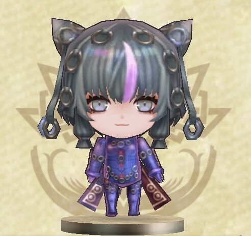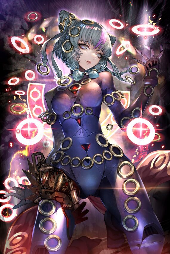 | ◆戦闘時、味方の騎士と弓使いの攻撃力(40%)と防御力(15%)とクリティカル発生率が上がる。戦場に自身以外の<精霊島>所属の味方がいる時、騎士と弓使い以外に同じ効果を与える。 ◆戦闘開始時、軌道上の敵を一定時間(310秒)自動で攻撃(1体/約3.5秒/0.5倍)するビットを4体射出し、同時に攻撃した敵の攻撃力(25%)と防御力(25%)が一定時間(30秒)下がる必殺技が発動する。 憎しみと怒りの機能を持たない姉の代わり、憎悪する機械人形する。 | |