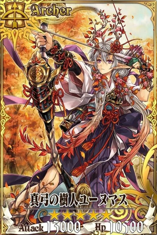| ◆攻撃力(450%)と防御力(25%)と移動速度が上がる。攻撃を当てると一定時間(60秒)効果が(攻撃力55%、防御力25%)上がり、さらにクリティカル発生率とクリティカル威力(100%)が一定時間(60秒)上がる。攻撃する度に効果時間が延長される。 ◆遠距離通常攻撃が、敵を貫通するようになり、貫通するたびに威力を(50%)増すが、敵との距離が近いほど通常攻撃の威力が上がる効果が発動しなくなる。 ◆WAVEが進むたび味方全体の攻撃力(5%)と移動速度とクリティカル威力(5%)が一定時間(120秒)上がり、3回まで防御力を(ATK5%)上げ、ダウン/暗闇を防ぐバリアをはる。 九領の樹と同化した精霊島の森妖精。 | |||