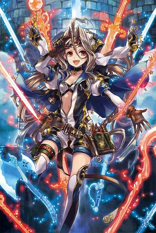 | ◆攻撃力(?%)と防御力(?%)と移動速度が上がる。攻撃を当てると一定時間(?秒)効果が(?%)上がり、さらにクリティカル発生率とクリティカル威力(?%)が一定時間(?秒)上がり、通常攻撃に盾破壊を追加する。攻撃する度に効果時間が延長される。 ◆攻撃間隔が早くなり、自身の通常攻撃に追撃効果(?%)を付与し、一定確率で敵をダウンにする。さらに近接通常攻撃力が(?%)上がり、遠距離通常攻撃が敵を貫通するようになり、貫通するたびに威力を(?%)増す。また遠距離クリティカル攻撃時、クリティカル攻撃が3回になる。 純粋な普通の魔法剣も、ちゃんと作れるようになったんですよ! | |