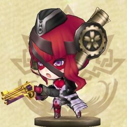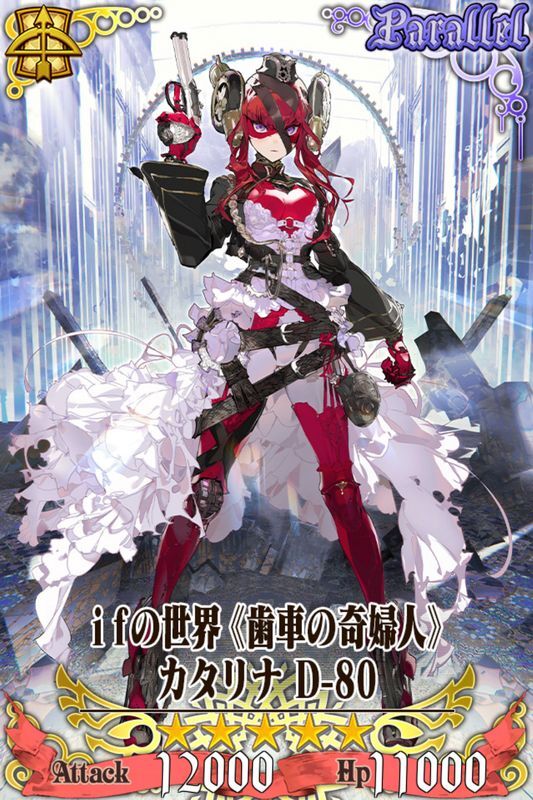 | ◆全ての必殺技が使えるマナを1つ持った状態で戦闘を開始する。 ◆攻撃力(?%)と防御力(?%)と移動速度とクリティカル発生率が上がる。マナを所持していると効果が(?%)上がり、さらにクリティカル威力(?%)が上がり、HPが徐々に(?%)回復する。 ◆敵を倒した時、一定確率で全ての職業で使用できるマナを獲得する。クリティカル攻撃か必殺技で倒すと獲得しやすくなる。 ◆攻撃間隔が早くなり、暗闇/封印にならなくなり、射撃が4発になる。さらに遠距離通常攻撃の弾速が早くなり、敵を貫通するようになり、貫通するたびに威力を(?%)増す。また遠距離クリティカル攻撃時、クリティカル攻撃が範囲攻撃になり、盾を破壊する。 《歯車の奇婦人》となった別世界のカタリナ。 | |