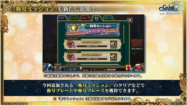 | <年代記の大陸>所属のキャラを 500回使おう | 称号フレーズ 『年代記の大陸』 |